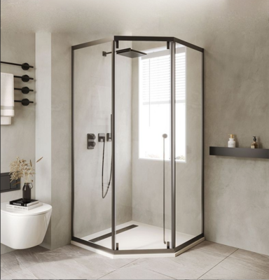 Cabin tắm 135 độ Slim với một cánh trượt, hai cánh fix, ray trên và ray dưới, và tích hợp giảm chấn là một lựa chọn tối ưu cho phòng tắm với không gian hạn chế. Điều đặc biệt ấn tượng là thiết kế góc cạnh độc đáo, giúp nó phù hợp với những phòng tắm nhỏ