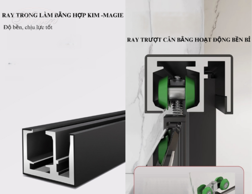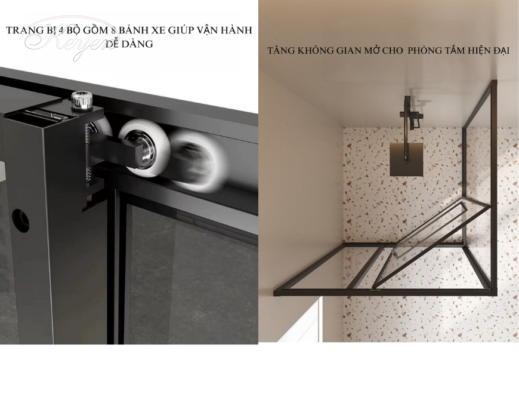Bánh xe và hệ thống giảm chấn được âm trong ray dưới, giúp tạo nên một diện mạo thẩm mỹ và hiện đại cho cabin tắm. Điều này đồng nghĩa với việc cabin tắm không chỉ mang lại sự tiện dụng mà còn là một phần của thiết kế nội thất đẹp mắt trong phòng tắm của bạn.