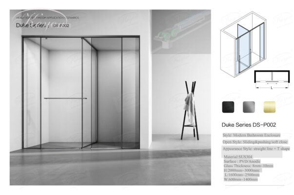 Cabin tắm DS-P002 với ray trên và giảm chấn hai chiều là sự lựa chọn thông minh cho phòng tắm có diện tích lớn. Thiết kế này tối ưu công năng bằng cách sử dụng 1 cánh cho 2 khoảng cabin, tiết kiệm không gian và tạo linh hoạt trong sử dụng. Với  màu sắc đa dạng, nó không chỉ mang lại sự tiện ích mà còn tạo điểm nhấn thẩm mỹ cho không gian tắm, đáp ứng nhu cầu và phong cách sống của mỗi gia đình.