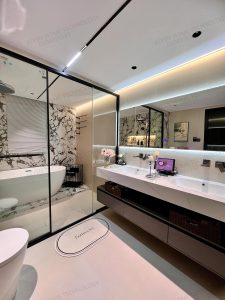Xu hướng thiết kế phòng tắm kính trong phòng ngủ đang ngày càng phổ biến ở các căn hộ cao cấp và khách sạn: