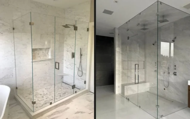Phòng tắm kính cao cấp – Slim, phun viền và các phong cách mới 2025