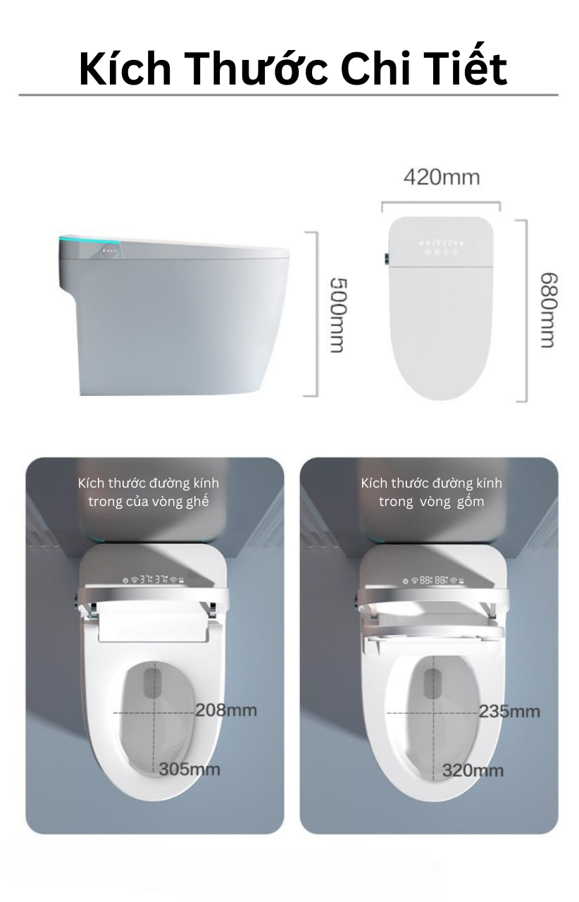 Bồn cầu thông minh cung cấp các chức năng rửa mông và rửa phụ nữ, tạo ra một trải nghiệm vệ sinh cá nhân tối ưu và thoải mái nhất cho người dùng.