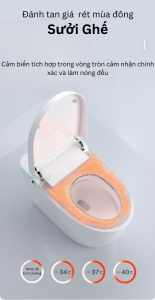 Bồn cầu thông minh với các tính năng tiện ích và hiện đại như màn hình LCD hiển thị, sấy khô bằng khí ấm, rửa mông, rửa phụ nữ, điều chỉnh nhiệt độ và áp lực nước, vòi rửa di động massage và remote điều khiển từ xa không chỉ là sự kết hợp hoàn hảo giữa công nghệ và tiện ích mà còn là lựa chọn hàng đầu cho mọi gia đình hiện đại.