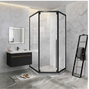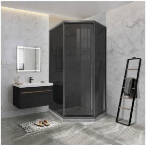 phòng tắm kính 135 độ Slim với một cánh trượt, hai cánh fix, ray trên và ray dưới, và tích hợp giảm chấn là một lựa chọn tối ưu cho phòng tắm với không gian hạn chế. Điều đặc biệt ấn tượng là thiết kế góc cạnh độc đáo, giúp nó phù hợp với những phòng tắm nhỏ