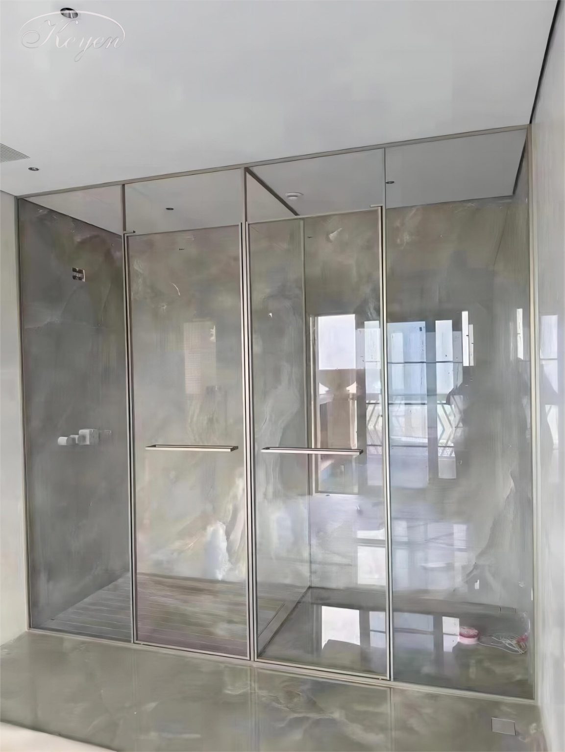 Phòng tắm kính vách kính nhà tắm hay còn được gọi vách kính tắm.Khái niệm này là một kiến trúc được xây dựng bằng kính, tạo ra một không gian riêng biệt cho khu tắm. Tương tự như một phòng tắm thông thường, mục đích chính và cơ bản của cấu trúc này là cung cấp một không gian để tắm, tách biệt và riêng tư.