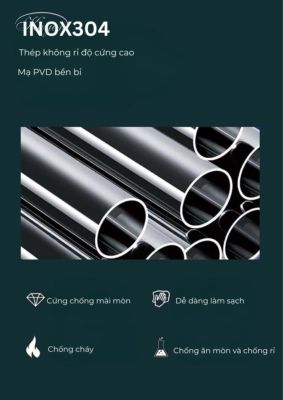 - Sử dụng chất liệu hợp kim nhôm 304 chất lượng cao, mạ PVD, đảm bảo độ bền và độ ổn định của sản phẩm trong quá trình sử dụng.