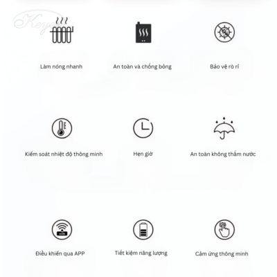 - Cho phép người dùng thiết lập thời gian hoạt động của chức năng sưởi từ 1 đến 8 giờ, giúp tiết kiệm năng lượng và tạo ra một môi trường phòng tắm thoải mái.