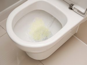 Bồn cầu thoát nước chậm, có bong bóng nổi.